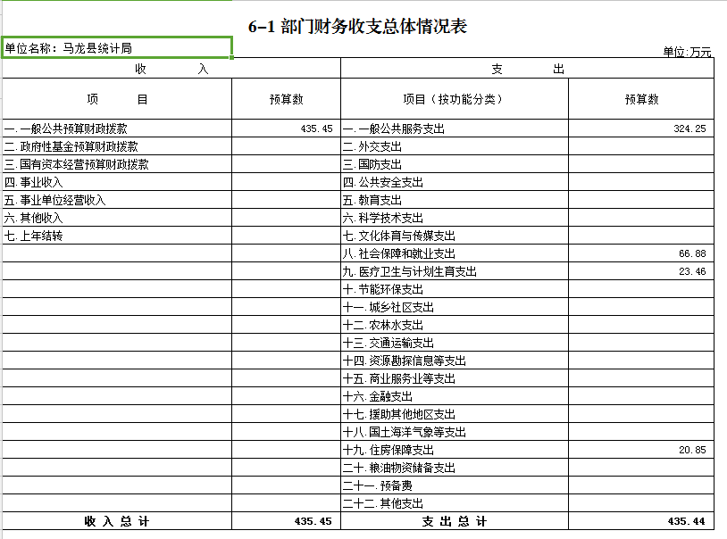 马龙县统计局2018年预算公开