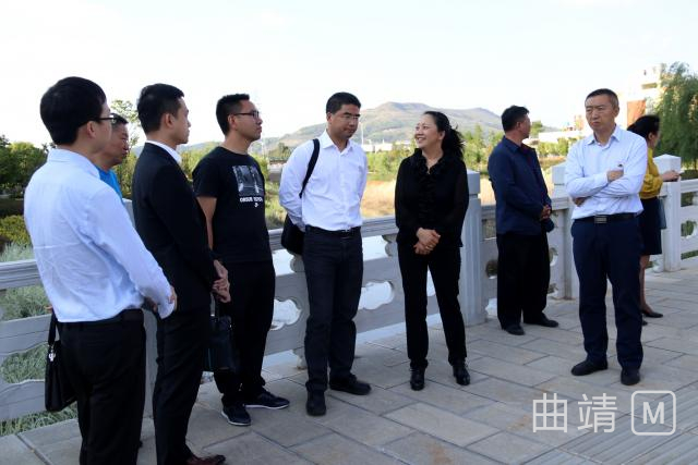 考察组一行先后来到黑泥大山、县规划馆,查看并听取了马龙县城区域布局、规划发展及大健康产业规划选址、麒马大道建设等情况;深入汇龙溪湿地公园、水景公园、沈家山森林公园、利民桥等处,查看了马龙县城水系连通情况。