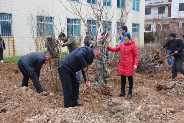 1月29日,大庄乡组织干部职工60余人在乡林业站办公楼前栽植桃树100余株,持续推进“森林大庄”、“美丽大庄”建设。